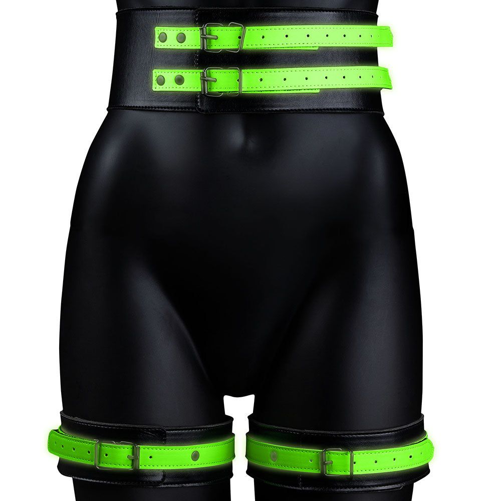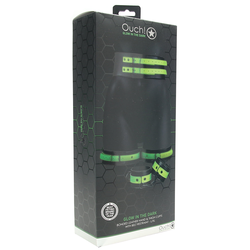 Ouch! Glow Bondage Belt with Thigh and Wrist Cuffs in L/XL