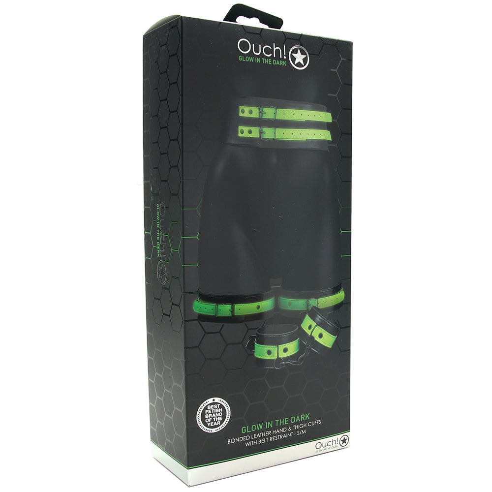 Ouch! Glow In The Dark Bondage Belt with Cuffs in S/M