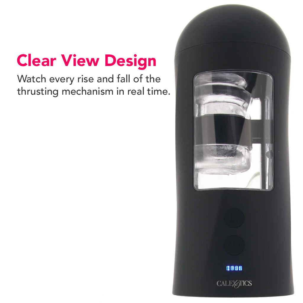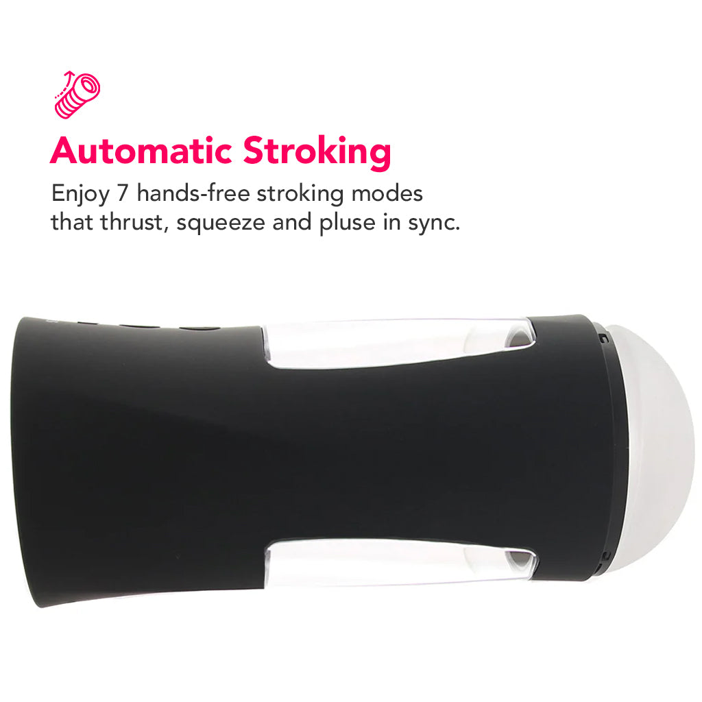 Thanks to two clear viewing windows, you can keep an eye on a fully automatic thrusting mechanism as it rises and falls, squeezing and stroking you/them right to the brink and over the top. Sit back, relax, and let seven modes of automatic thrusting do all the work.