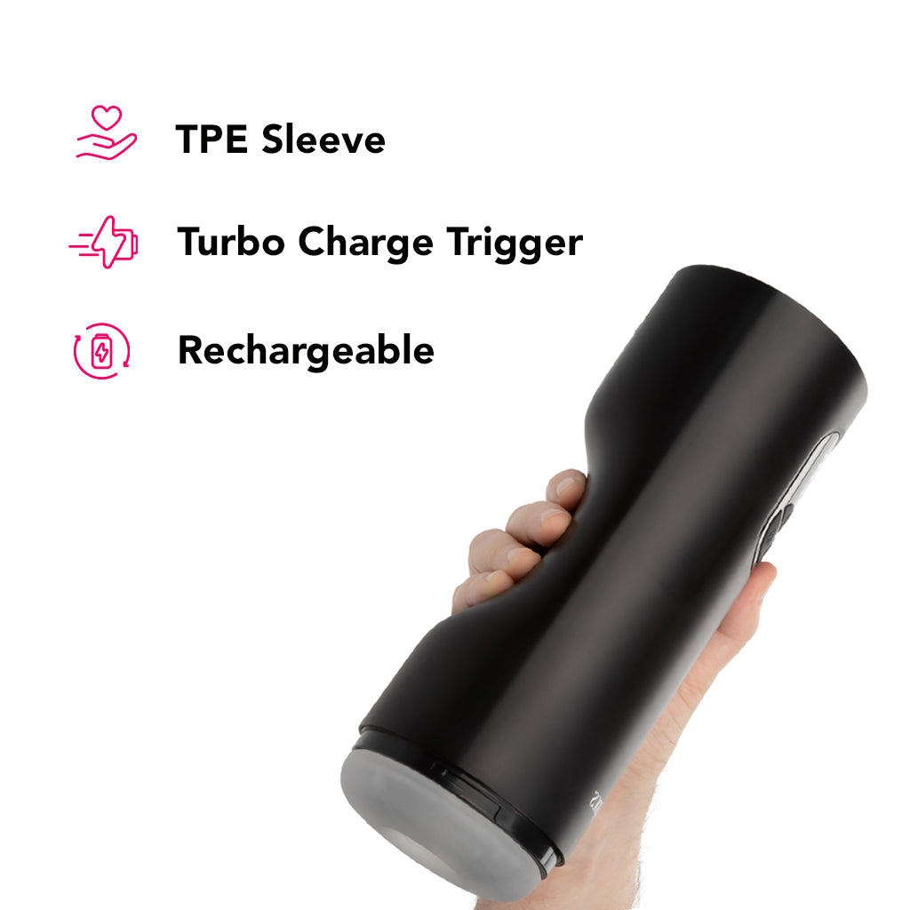 True to its name, the Bionic Thrusting Masturbator thrusts. A lot. One button activates Bionic's power-packed internal mechanism and sends it thrusting up and down at seven possible speeds/intensities. Need more? A special Turbo Charge trigger switch on the easy-grip case will instantly rev your Bionic to max capacity at any time.