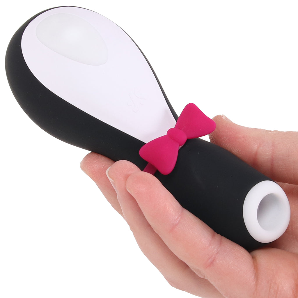 Adorably styled and featuring innovative Pressure Wave technology, Satisfyer's Penguin Air Pulse Stimulator combines a silky scooped silicone treatment tip with eleven modes of unique undulating suction, a fully waterproof design and convenient re-charge potential.