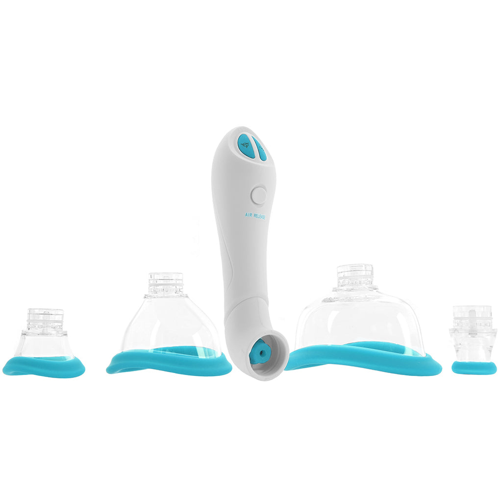 Inside the box, you'll find a firm, curvy handle housing simple controls and air release button. Your Bloom will come with the largest silicone-lined cup already in place, and the three smaller versions tucked alongside.