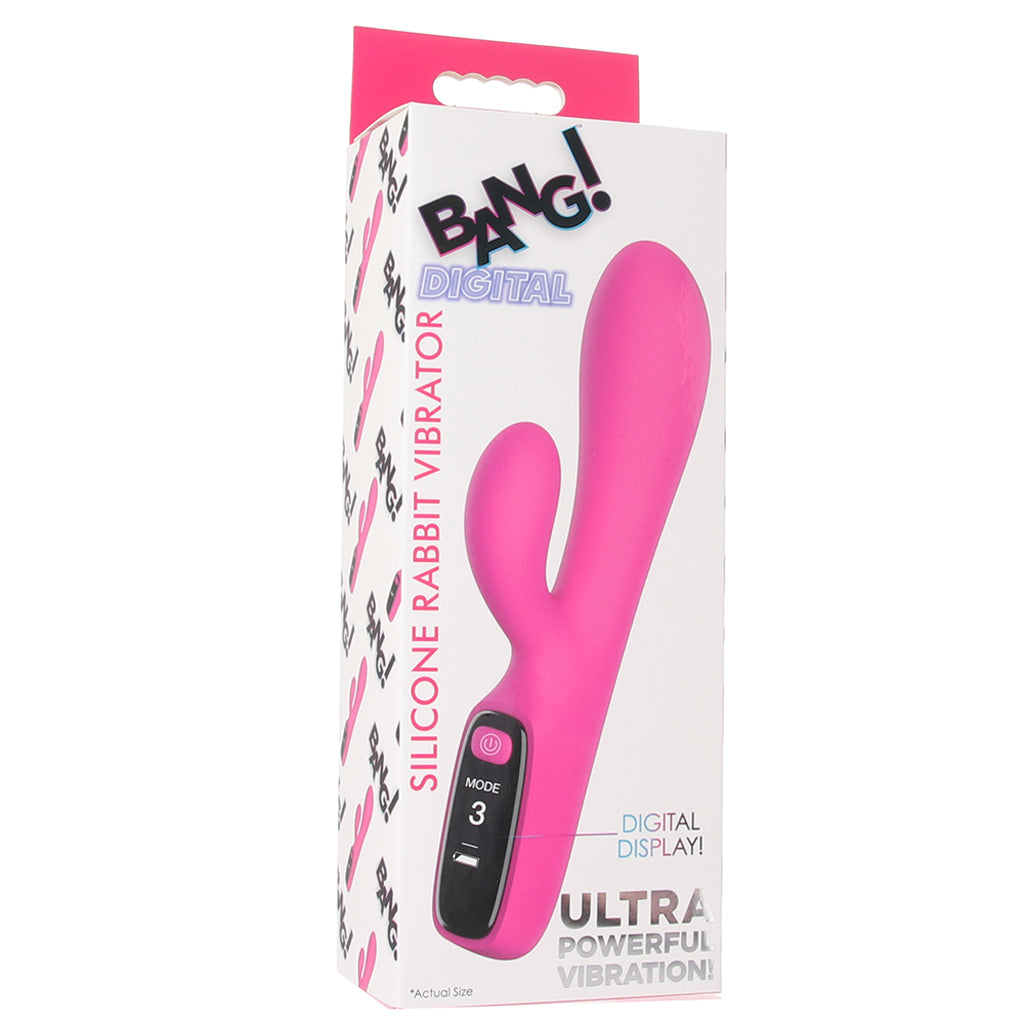 The silky silicone Bang! Digital Display Rabbit is hypoallergenic, hygienic, and easy to clean and care for. Wash it with mild soap and water or use a favorite toy care fluid/foam. You can pair this vibe with any water-based lube you love, but please keep it away from silicone-based lubes and other silicone toys. USB rechargeable, cord included. Waterproof.