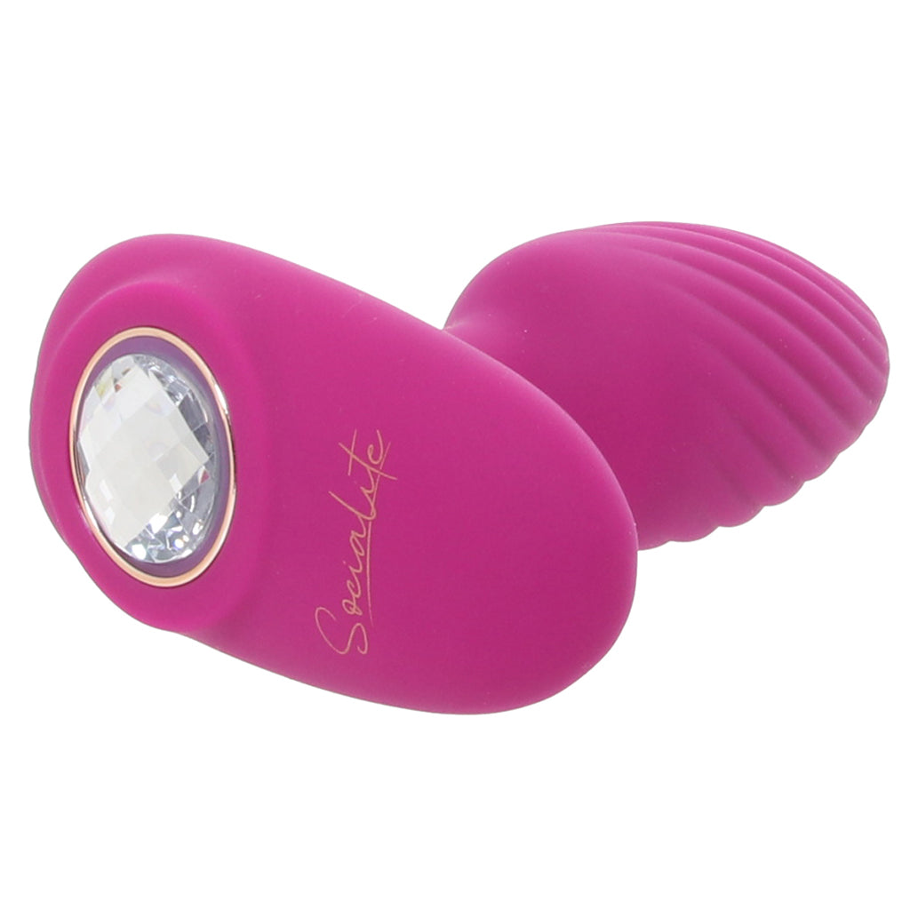 Like any good anal vibe, Swag features a big base that a) helps prevent any too-deep slips and b) makes removal easy and precise. The pretty crystal base also controls seven rumbly, tip-focussed vibration modes. Press to activate and cycle through them.