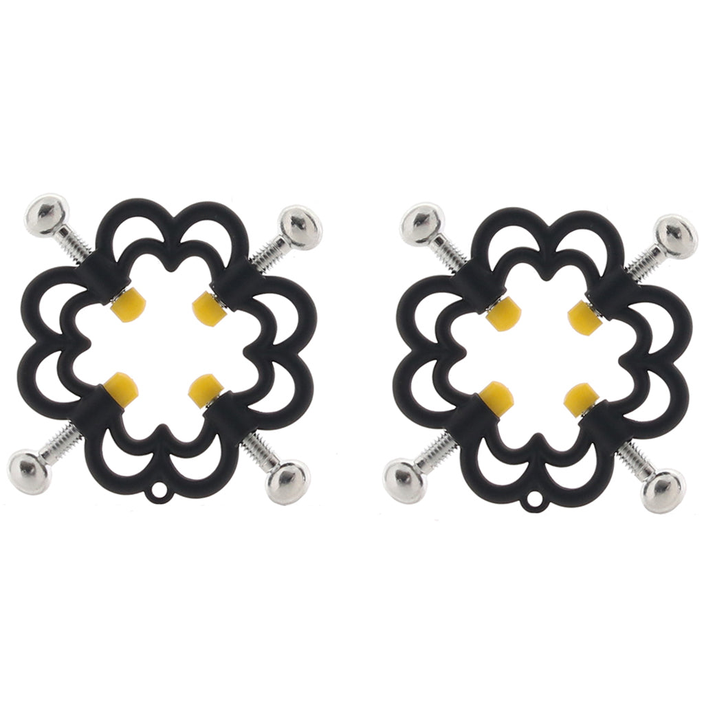 Fully adjustable by design, these soft(er) tipped four way clamps are super-easy to customize in terms of tension. Position one the four screws around a nipple, then twist the beaded tips to close 'em up tight.