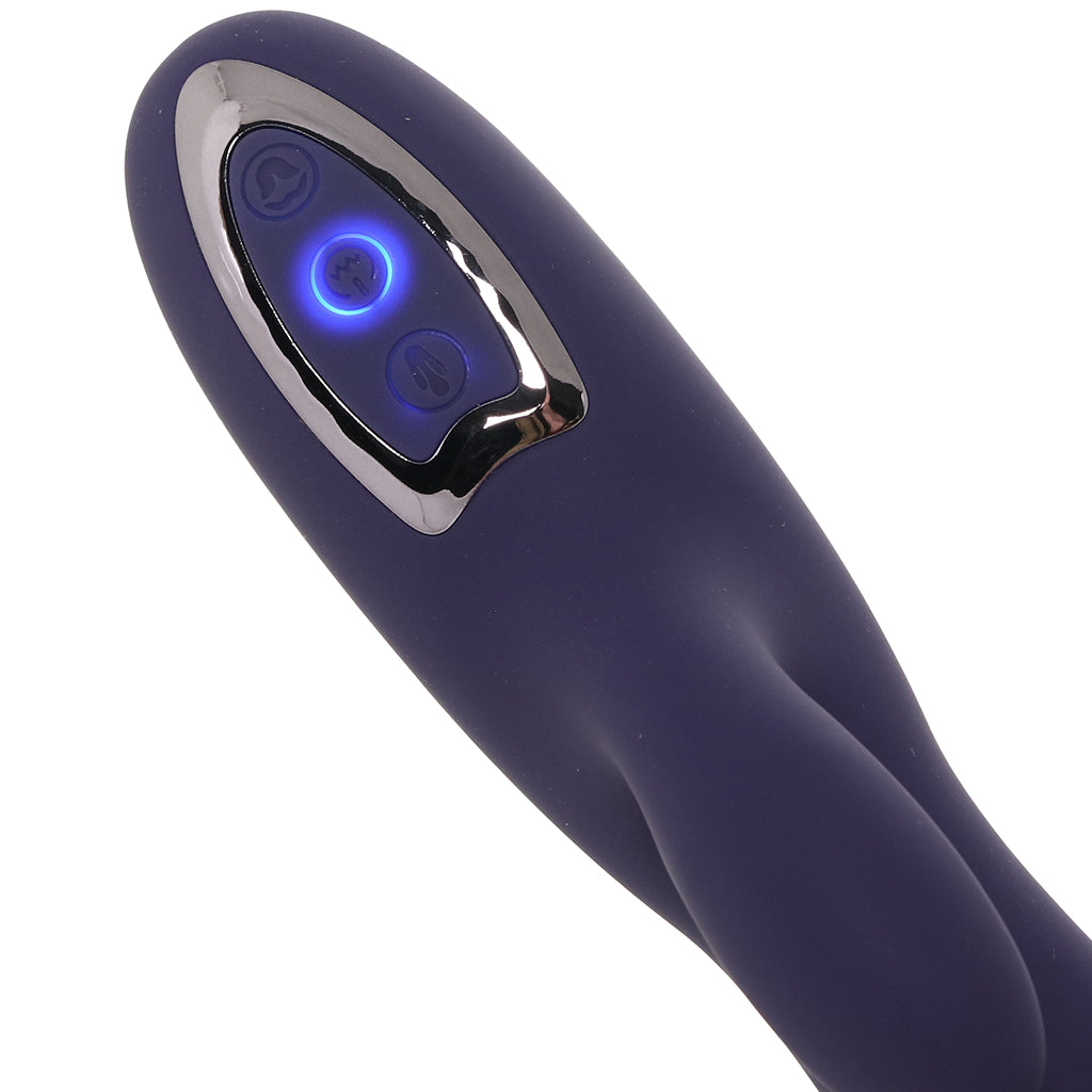 Three separate buttons control ten vibration patterns in the tip and outer teaser and ten more tireless arm motion modes. See/feel which combo makes you stop and stay right there…or keep going.