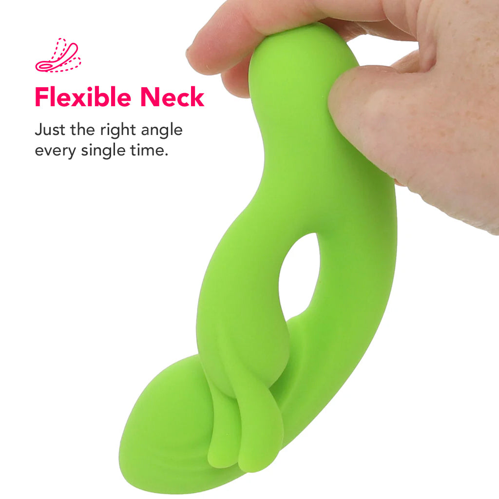 Up top, Brat's textured, chubby head curves perfectly to find your G-spot/inner hot spots, while the flexible bunny ears buzz against your clit, etc. for that classic dual-motor rush. However you play, the soft, bendy shaft moves naturally with your body, following every rhythm you set.