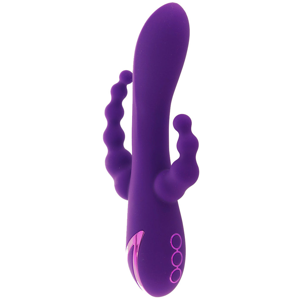 Swollen and curvy at its smooth-as-silk tip and featuring a teasing, bumpy 3.5"/9cm anal tail plus a matching outer tickler for three times the sensation, Bootylicious hits all your/their sweet spots at once. Yum. In the up-curled clitoris (and beyond) stimulator and the anal tail, ten modes of rumbly, relentless captivate any lucky sweet spot that come in contacts. Meanwhile three powerful modes of vibration throb through the shaft. A simple 3 button interface controls all.