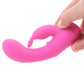 Once it's in position, the smooth, swollen probe works magic inside as a wee bunny tickler reaches up from below to ravish your clit and outer hot spots. Remember, you can flex it to fit just right!