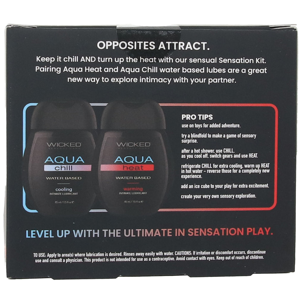 The Sensation Kit pairs Aqua Heat and Aqua Chill water-based lubes for a hot-then-cold (or cold-then-hot) adventure that keeps bodies guessing and nerves very awake. One warms things up, the other cools things down, and together they make sensation play feel fresh, surprising, and very addictive.