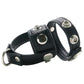 Looping over the shaft and securing with snaps, the Ring's main strap holds tight to help maintain erection. Snapping into place at the base of the scrotum, a thick 1" (5cm) band tugs the testicles away from the body while a third gently splits the balls. Add extra weight to the stretcher area using an attached ring.