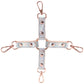 Fixed in a classic cross shape, four short silvery straps connect to four squared-off rings complete with rose gold swivel clasps. The clasps, in turn, connect to just about any cuff - as long as there's some type of connector, you should be good to go. Cuffs sold separately.