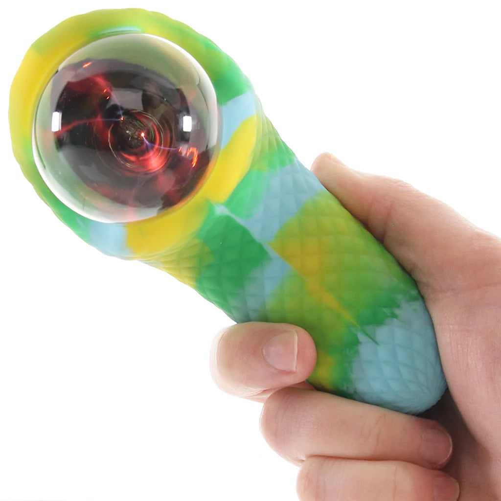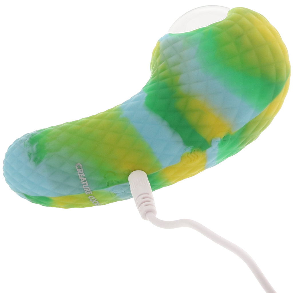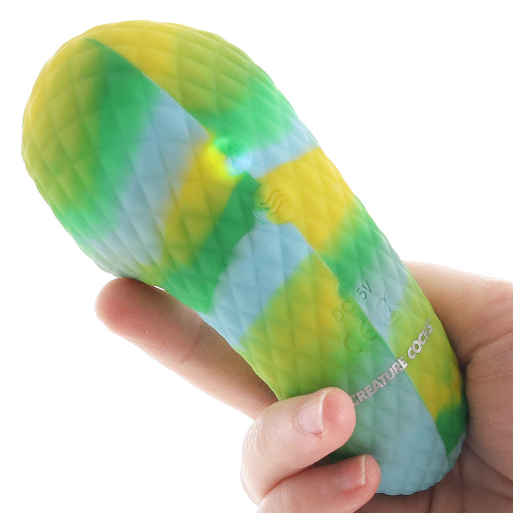 Two motors, three speeds, and seven distinct vibration patterns power up a journey through both ends of this creature-shaped toy, while the scaly silicone surface adds an electrifying edge to your strokes, swirls, and slides. One glance into its glowing eye and you’ll be under its spell. Who knew interstellar travel could feel this good?