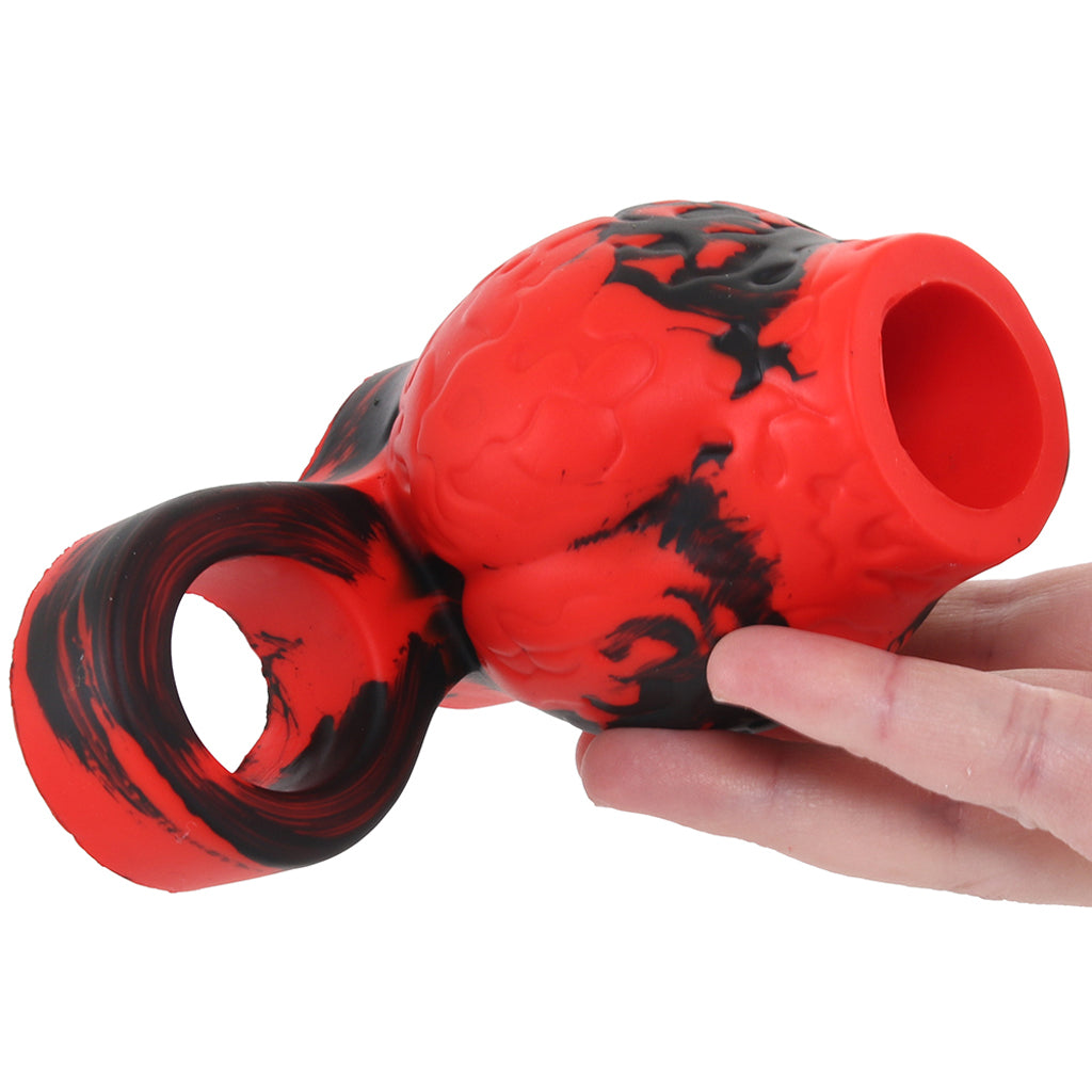 Slide the ultra-soft sleeve over any penis or penetrator to add extra thickness (1.6"/4cm) and tons more sensation. If a penis is involved, the Hell Hound's ball strap can help support and maintain its owner's erection; it'll keep the sleeve in place either way.