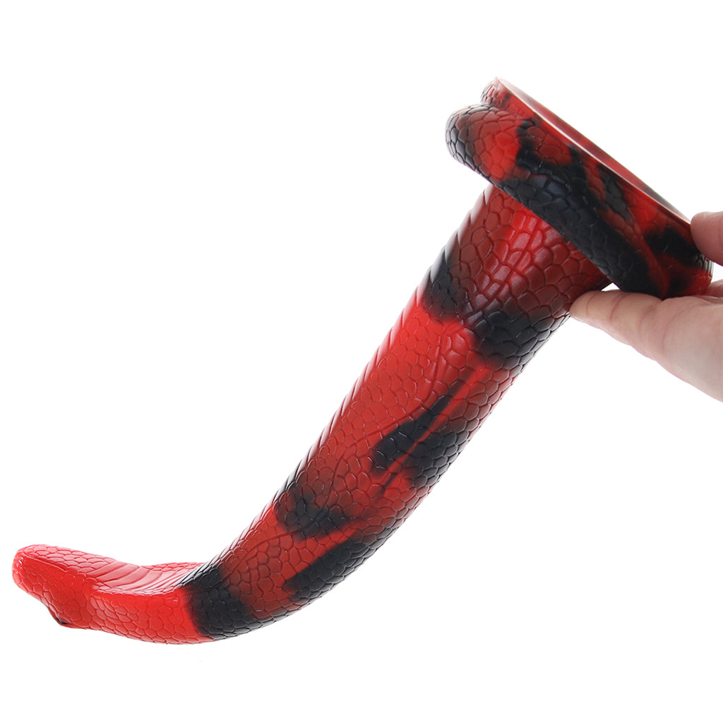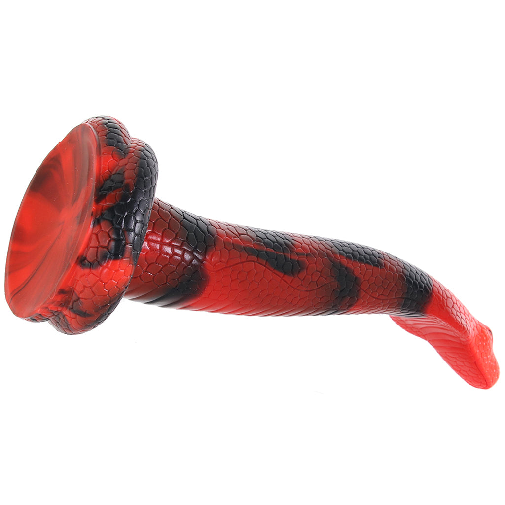 Aside from its sleek, snakey shape and otherworldly red and black coloring, this inhuman dildo features lots of filling length, a sleek, sweet-spot-seeking tip, and some scaley texture. Plus, it's extra flexible and will bend and move as you or they need it to.