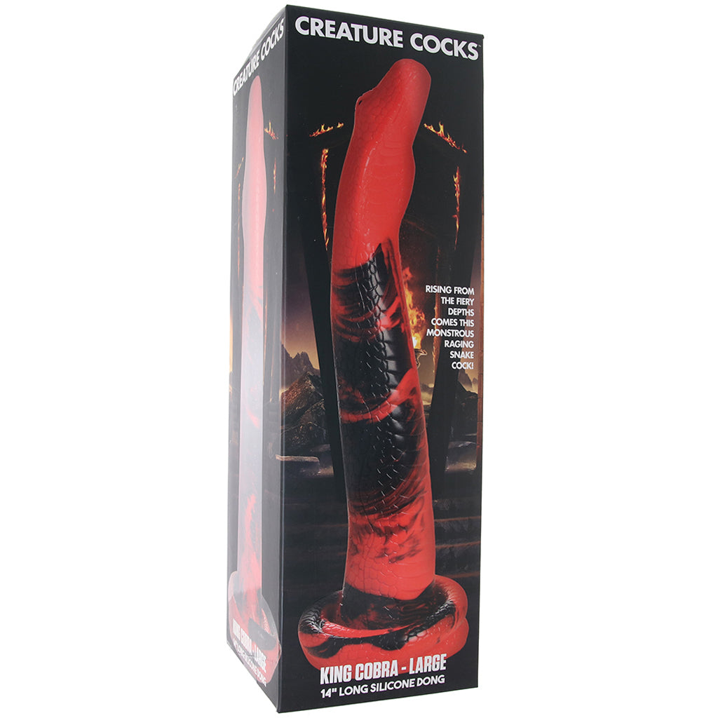There are many places a venomous snake probably/definitely shouldn't go, and into your or your partner's body is the most important one! Nevertheless - maybe you've wondered what it'd be like to have a danger noodle slithering inside you? Creature Cocks has your serpentine fantasies covered - safely - with the King Cobra Large Silicone Dildo.