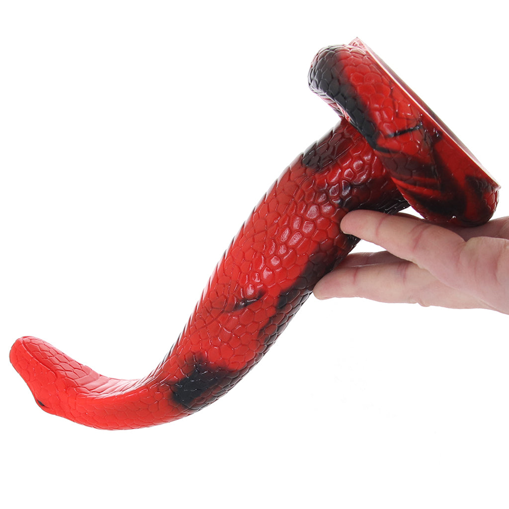 Aside from its sleek, snakey shape and otherwordly red and black coloring, this inhuman dildo features lots of filling length, a sleek, sweet-spot-seeking tip, and some scaley texture. Plus, it's extra flexible and will bend and move as you or they need it to.