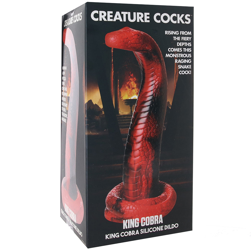 While there are many places a venomous snake probably/definitely shouldn't go, into your or your partner's body is the most important! Nevertheless - maybe you've wondered what it'd be like to have a danger noodle slithering inside you? Creature Cocks has your serpentine fantasies covered - safely - with the King Cobra Silicone Dildo.
