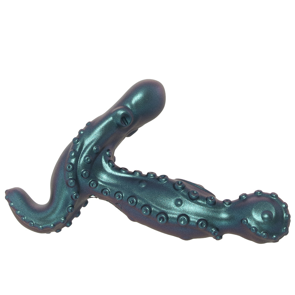 This deep-sea fantasy brings full aquatic chaos right to your prostate (other inner hot spots, too) with a metallic blue-purple penetrator covered in sculpted suckers. The flexy neck lines up right where it counts inside, and a grind-able base adds steady pressure and lots of vibration outside.