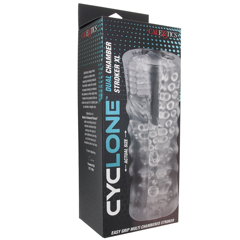 It's hard (so to speak!) to go wrong with an incredible stroker, yes? Then again, there's always a way or two to make it even better. For instance, you could add a naturally magnifying, crystal clear design and not one but two textured pleasure channels. Well, what do you know - that's just what the Cyclone Dual Chamber Stroker did!