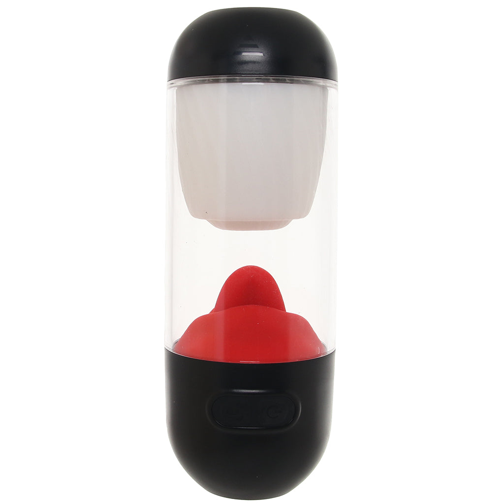 At the entrance, soft nodules hug you tight while inside, a realistic moving tongue teases the tip in real time. Add in the clear container and you’ve got front-row seats to your own show.