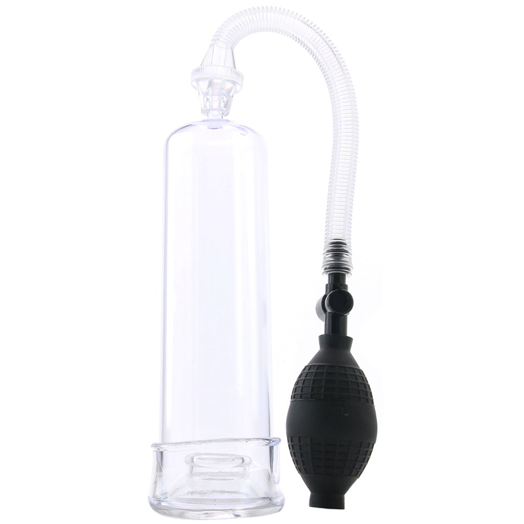 Nice and easy in both shape and function, a crystal clear chamber contains the penis to be pumped, while a squishy soft (removable) donut sleeve over the mouth cushions skin while keeping a tight seal. To begin, get comfortable inside the pump- use a little water based lube if needed, then squeeze the black ball valve. When you're as hard as can be, dissolve inner pressure with a quick release button to the side of the ball.
