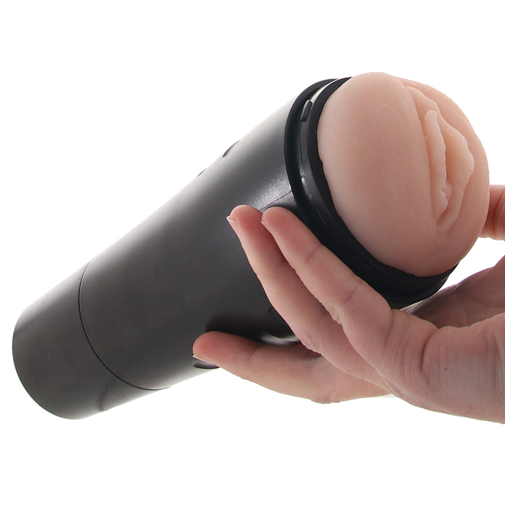 First things first. Inside a tapered easy-grip case, the removable super-soft Real Feel sleeve welcomes its user into a custom-textured inner sleeve topped off by a perfect replica of Emily's pussy. Blissful bumps, ribs, and pleasure chambers grip release and cling through to a back end that you can keep closed tight or open for a less intense grip.
