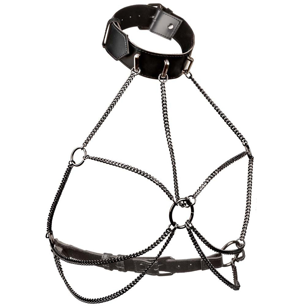 Ever wondered what it would look like if fetish and fashion hooked up? It would look just like Euphoria's Multi Chain Collar Harness! Speaking of hookups, you can hook up this strappy, jet-black number to a ton of your favourite bondage gear. Oh, and it'll instantly sex-ify any outfit, too.
