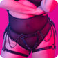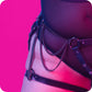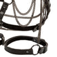 The comfortable, velvet-lined, chain-decked harness buckles over your or their waist and each thigh, holding studded straps vertically over the wearer's hips. Four O-rings can be clipped or clamped to cuffs, leashes, tethers, and more - if you're so inclined!