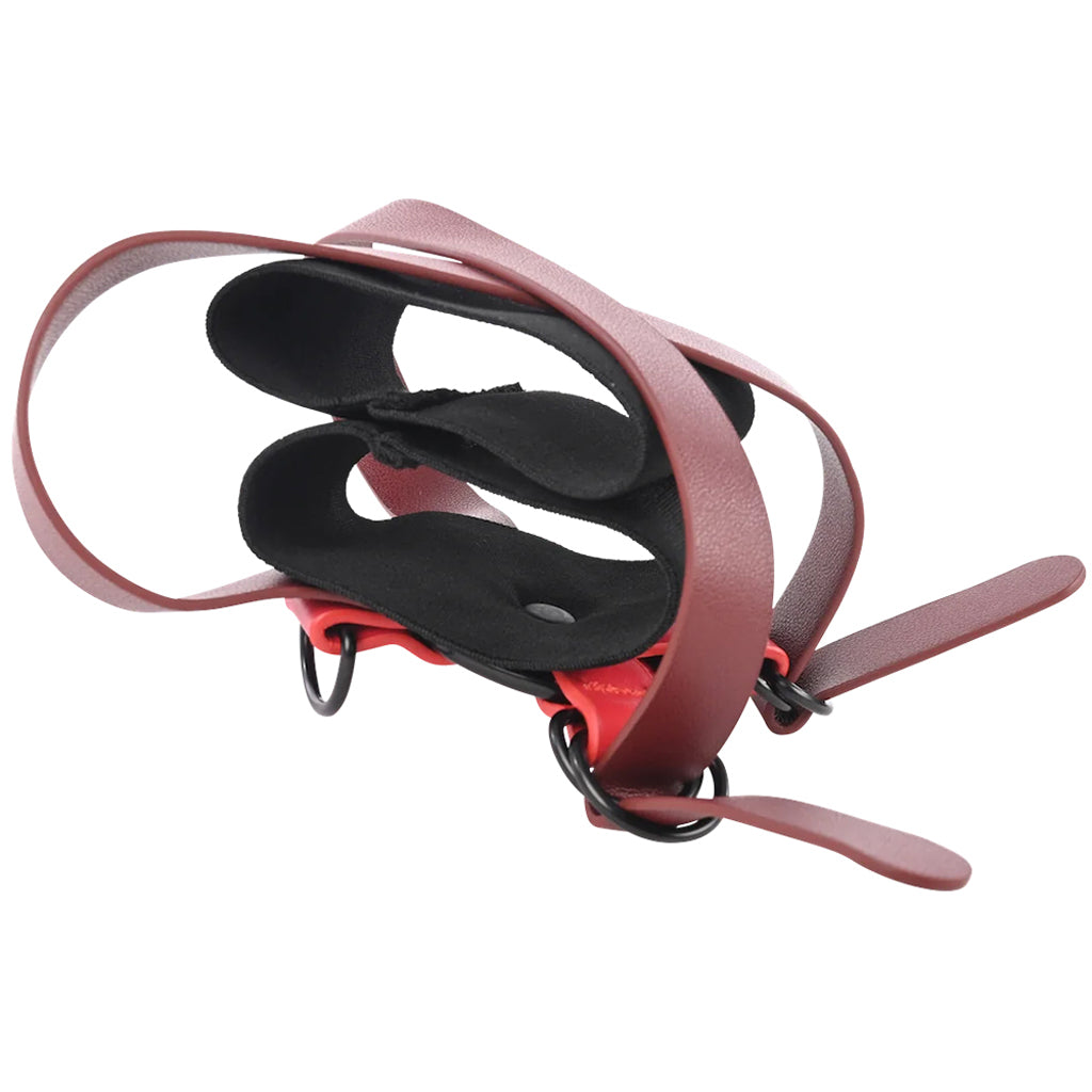 Attached in the middle, the Cross Wrist Cuffs' stretchy black bands hold tight over each wrist. Buckle the vegan leather straps to add security and snugness—a sturdy metal O-ring keeps everything together. Play on!