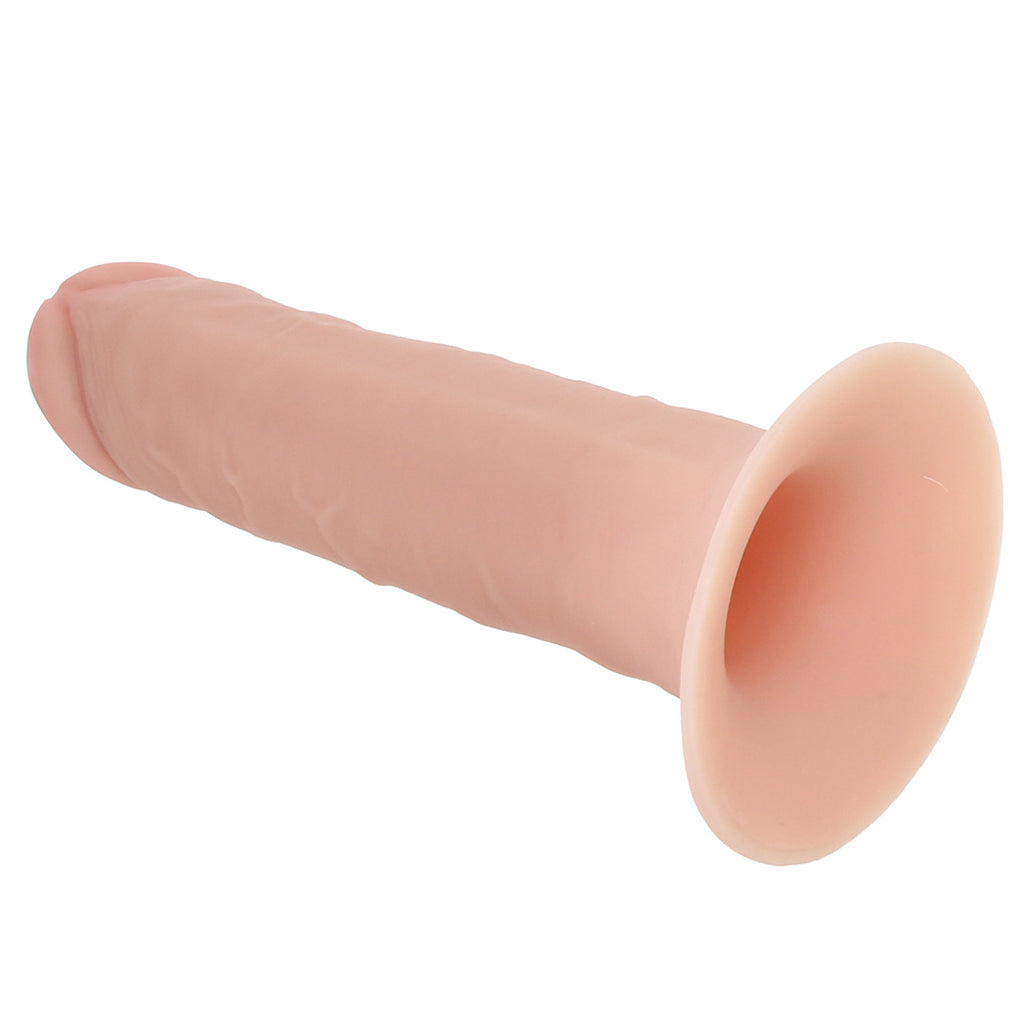 At the core of this handy strap-on set, you'll find a signature Elite dildo with a flexible contoured base. The realistic (penis) shape has lots of delightful detail, including a super-soft liquid silicone tip. Fun fact: if you're using the 8 Inch as an extender or assistant, that tip adds about two inches of length to your penis or penetrator.
