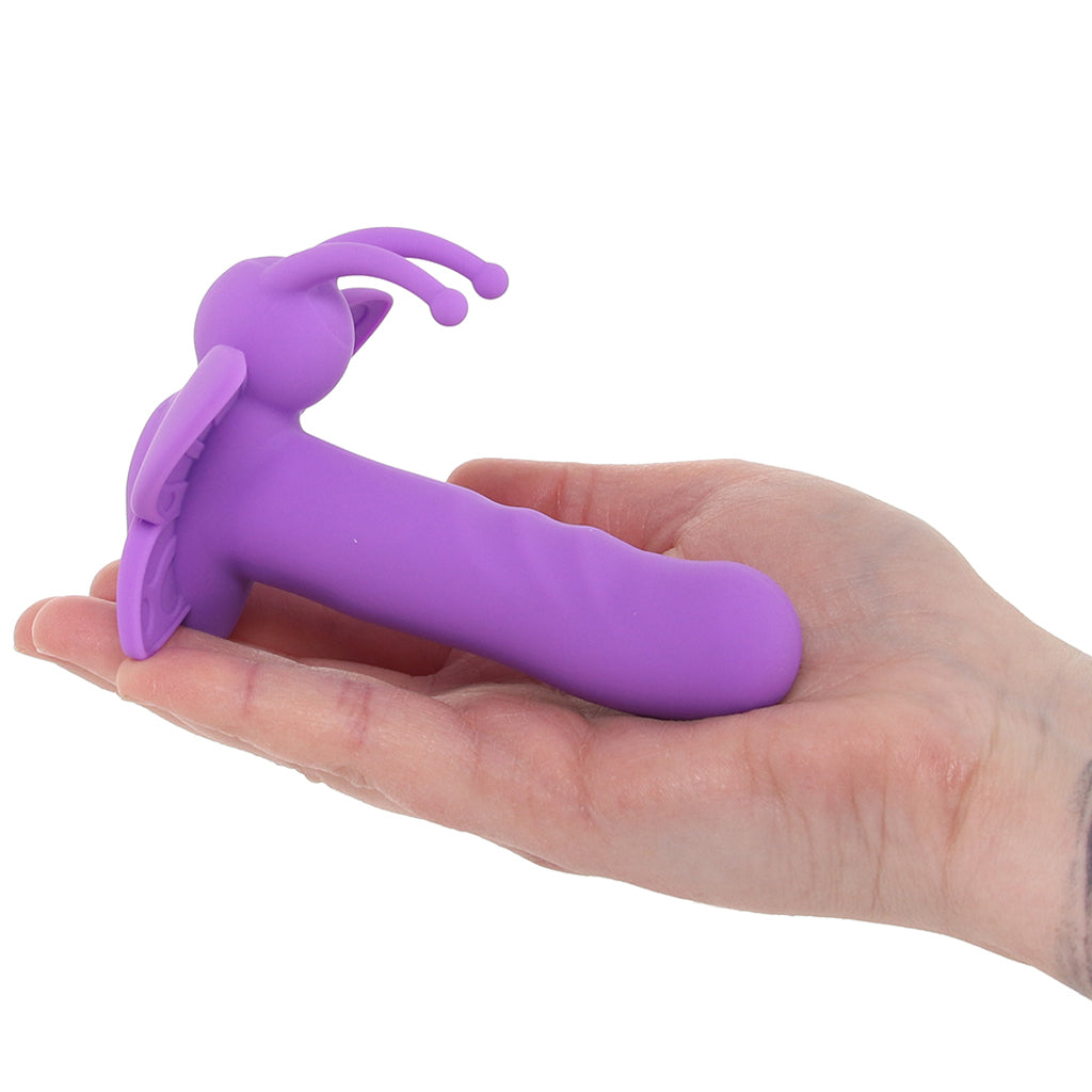 Pleasure problem: you're craving full-coverage clit/outer stimulation AND sweet-spot-targeting penetration. Luckily, CalExotics' First Time Rotating Venus Butterfly Vibe does both!