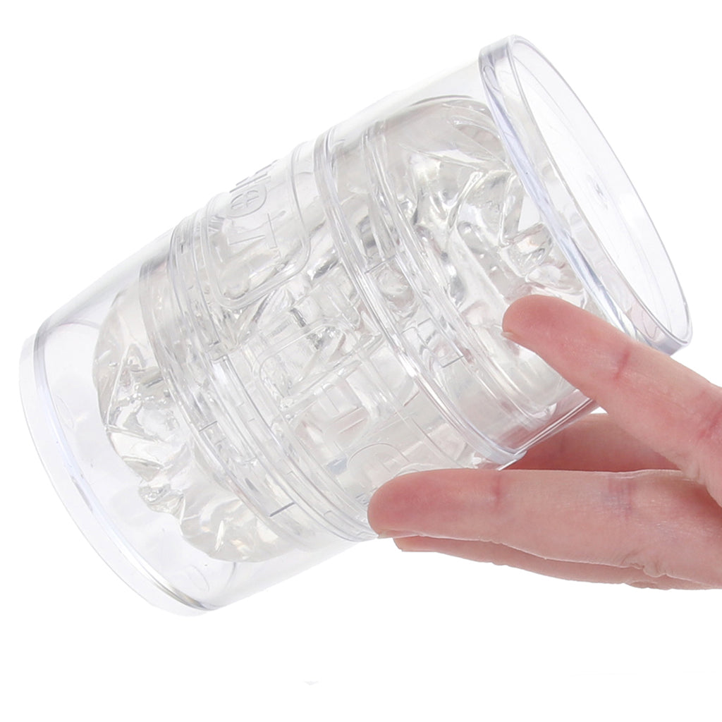 Tucked inside a compact little case, you'll find a double-sided sleeve in crystal clear Fleshlight-patented SuperSkin. Pop off the end caps to dive into either the pretty lips or the tight butt, or use it as a blowjob booster; either way, you (or they!) will love the wavy Vantage texture.