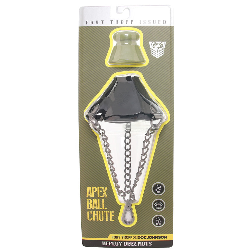 Craving some sexy stretch for your balls? Fort Troff's Apex Ball Chute reporting for duty! This chain-decked stretcher tugs tight as is, but you can clip on more weight if you want.