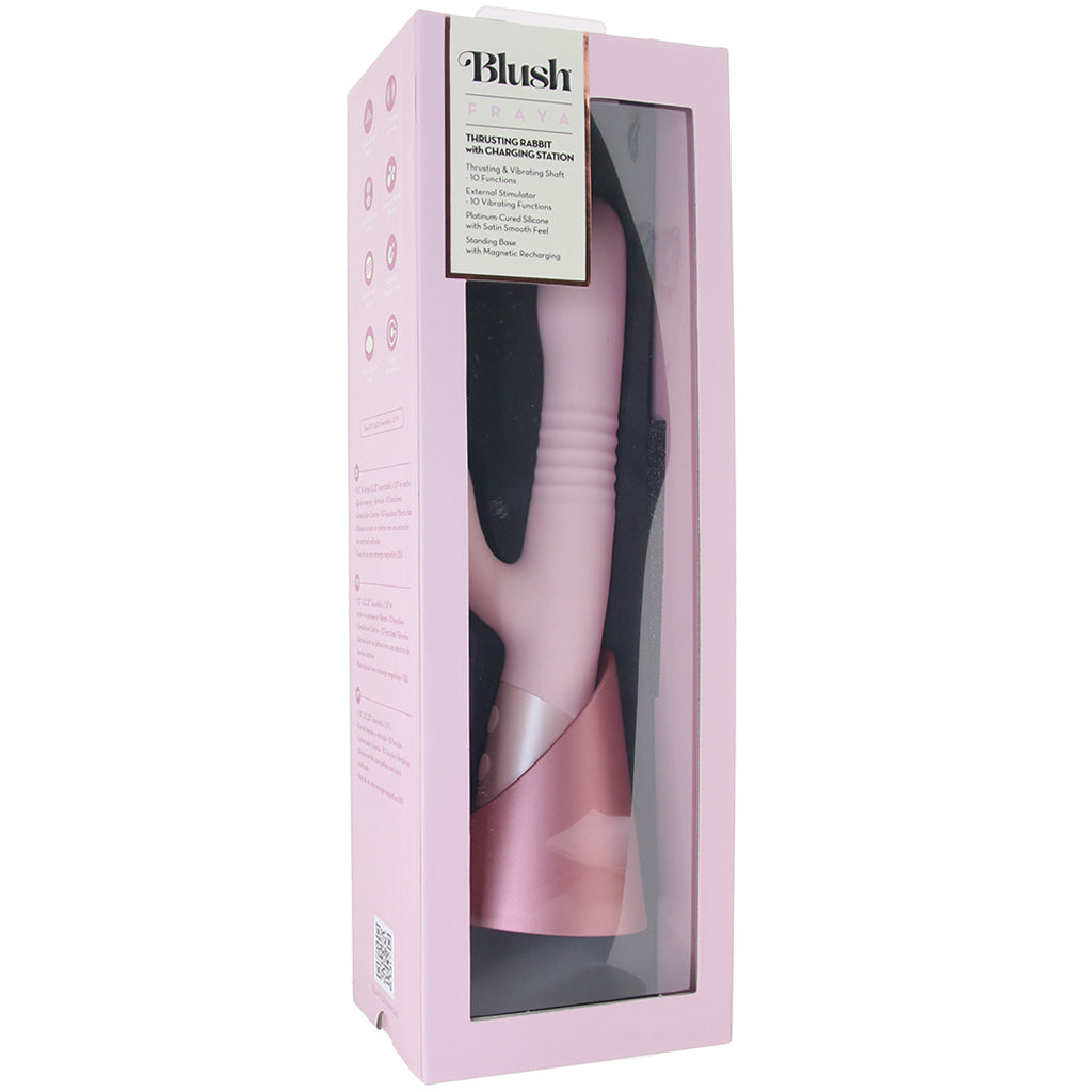 In Blush's platinum-cured silicone, Fraya is hypoallergenic, skin-safe, and easy to clean and care for. Wash it with soapy water or a favorite toy care fluid/foam. You can use your vibe with any water-based lube you love, but please keep it away from silicone-based lubes and other silicone toys/products. USB rechargeable, cord and charge base included. Fraya is not rated for use in water.