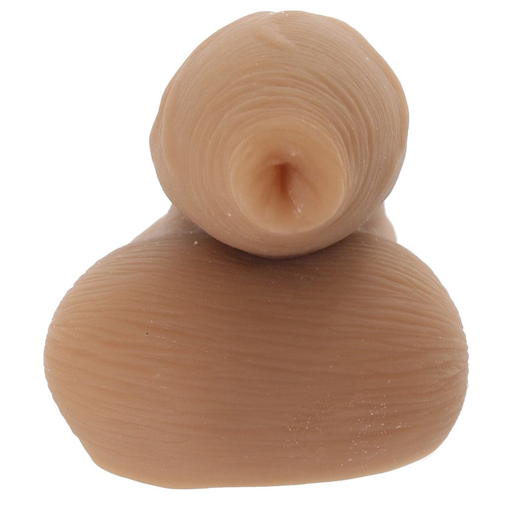 * The Uncircumcised Packer's base is 4"/10.2cm long. The shaft and balls are about 5.25"/13.3cm long and 3.25"/8.3cm high. The foreskin does not retract.