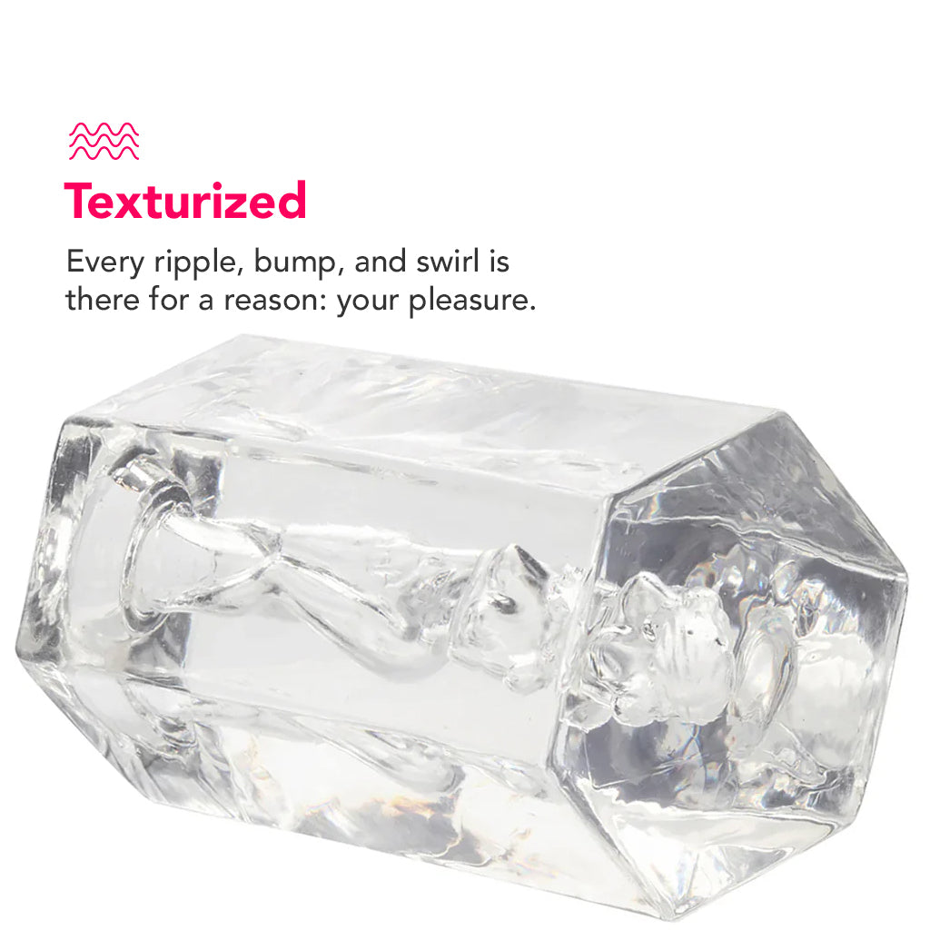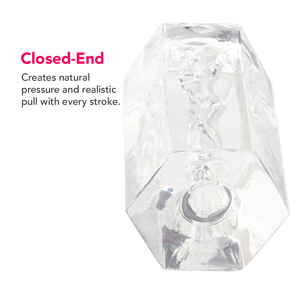 Dive deep to make the most of Crystal's stretchy, clingy snugness. You can squeeze it anytime to bring the texture closer, and because it's closed off around back, suction will naturally build up.