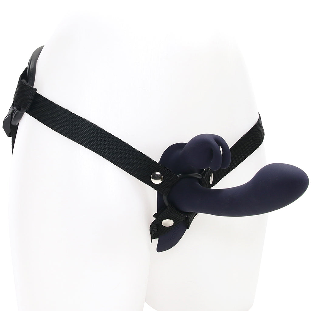 The included harness is easy to get into—slip it over your hips and tighten the straps. That's it! Slide the penetrator through beforehand to get it into jussssst the right spot.
