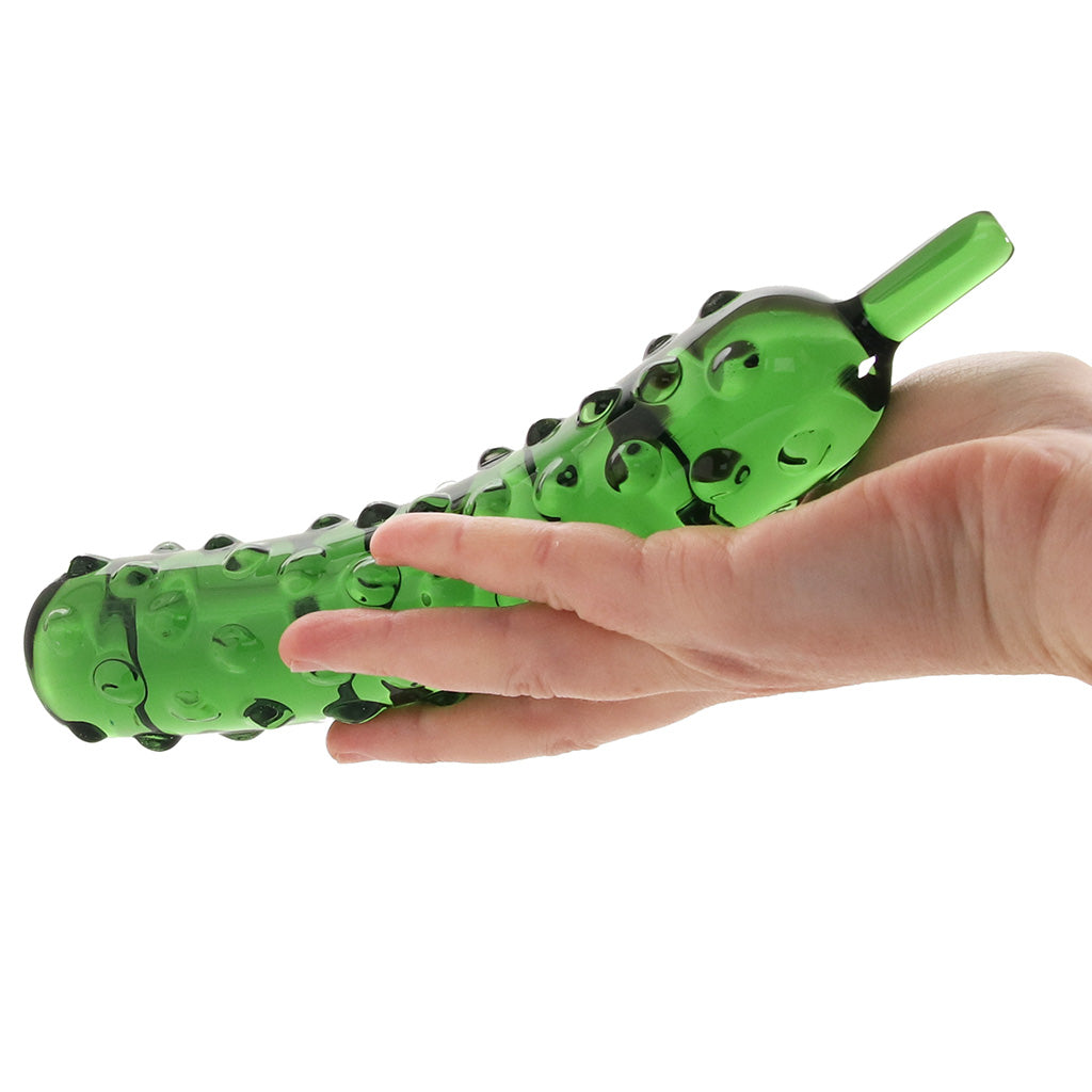Cool, crisp and ready to play! The Caressing Cucumber dildo brings refreshing satisfaction with a handblown glass design full of playful bumps that feel way better than your average salad ingredient.