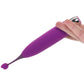 Up top, this precision wand's silicone tip is sexily forked; you can come at clits, nipples, g-spots, etc., from two sides if you want! Hit the button on the handle to activate and cycle through ten vibration modes.