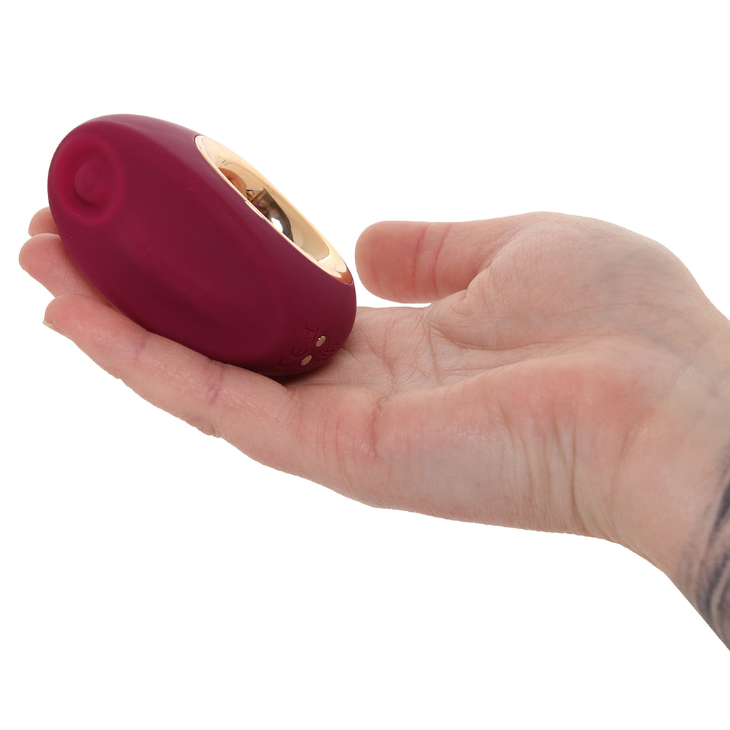 With a soft pad that presses perfectly against clits and outer sweet spots, Minerva delivers deep, throbby vibration that builds slow or hits fast. Your choice. The ring-shaped design slips comfortably around your fingers for total control, while the metallic handle adds a hint of gold-luxe glam.