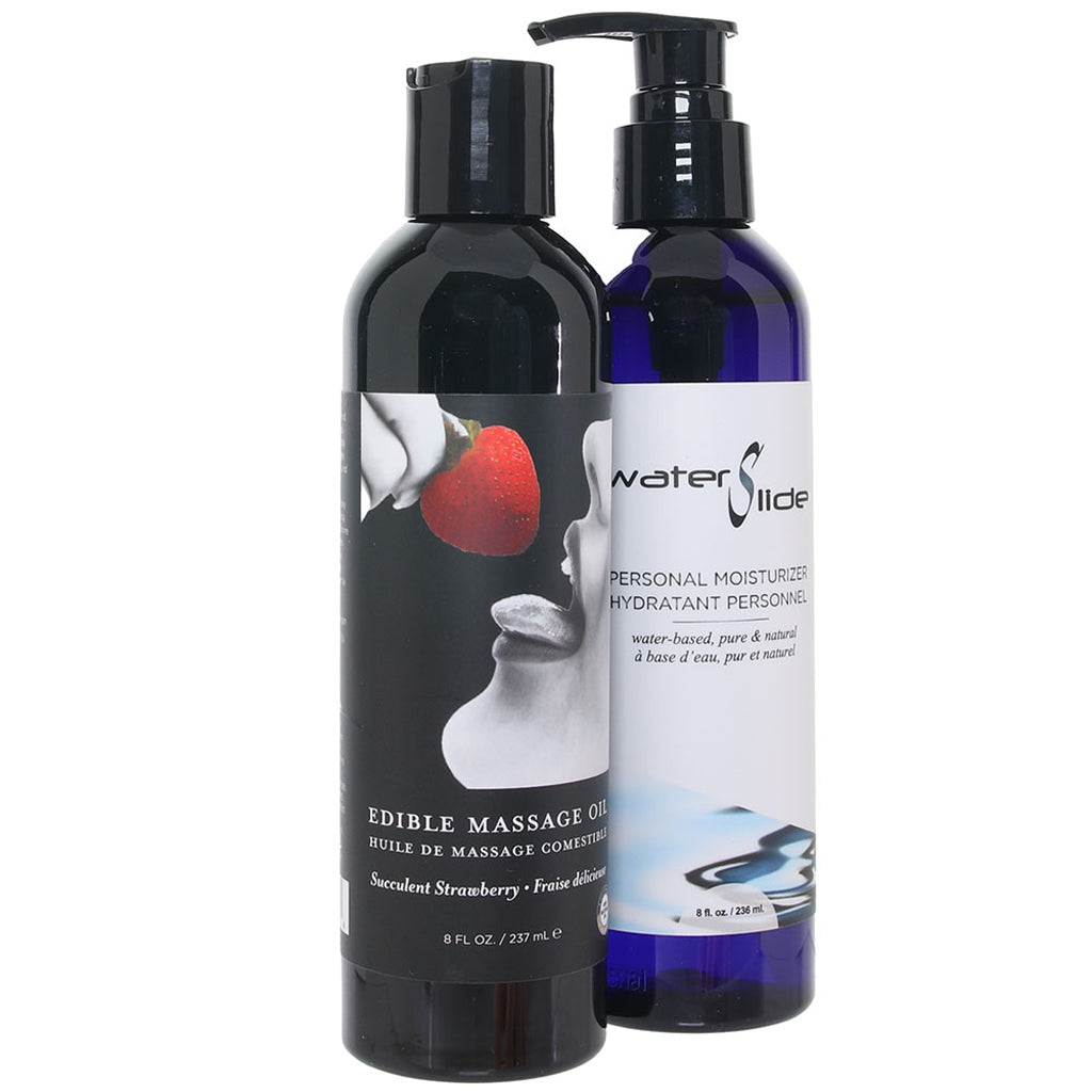 Coupling up has all kinds of benefits, and sweet-smelling slipperiness is one! Earthly Body's lube and flavored massage oil combo makes a perfect gift for someone you like a lot—or yourself.