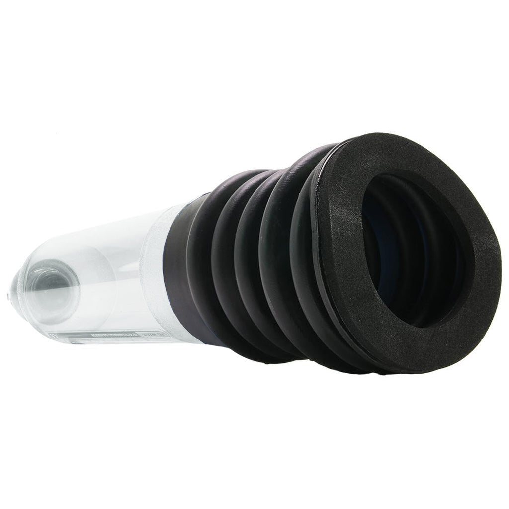 Your Hydro7 consists of an extra sturdy polycarbonate cylinder marked off into clear measurements, a pliable, skin safe synthetic rubber gaiter base and stainless steel spring release valve up top. This pump was tailor made for penises from 3 to 5 inches (18-13cm) in erect length.