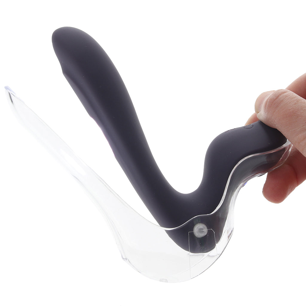 Opening up (literally) a whole new way to play, this sexy vibrating speculum leads the way to a very illuminating view of their insides. The slick silicone penetrator slips in for some deep-down inner vibration (ten modes of it!) and lots of outer stimulation as the firm plastic arm spreads them wide. Flip on the bright LED light for a great view.