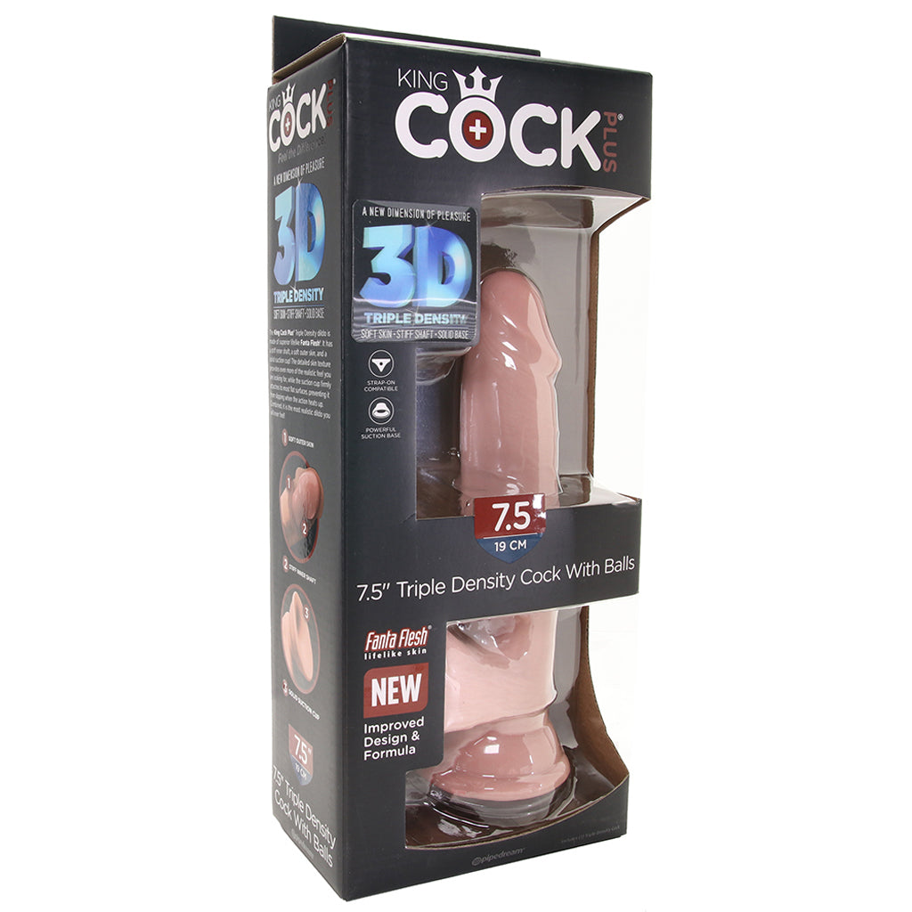 Hailing from Pipedream's new King Cock Plus collection, the Triple Density 7.5" Cock with Balls features a super-lifelike shape, tons of plushy, squeezable Fanta Flesh softness over a sexily stiff core, and easy compatibility with just about any strap-on set-up.