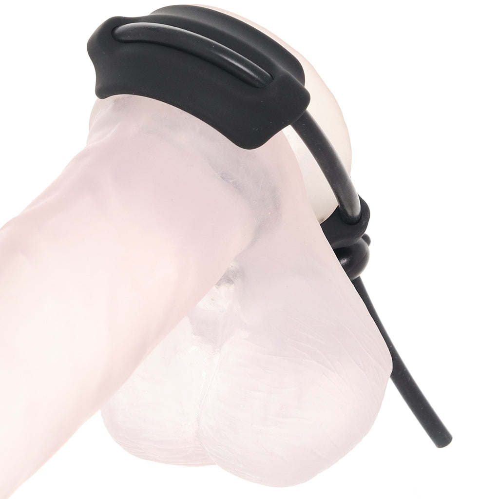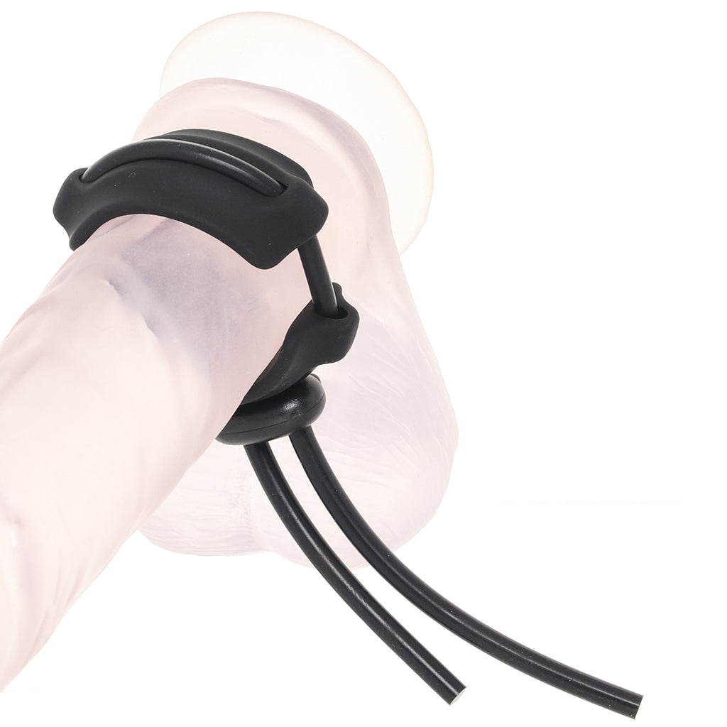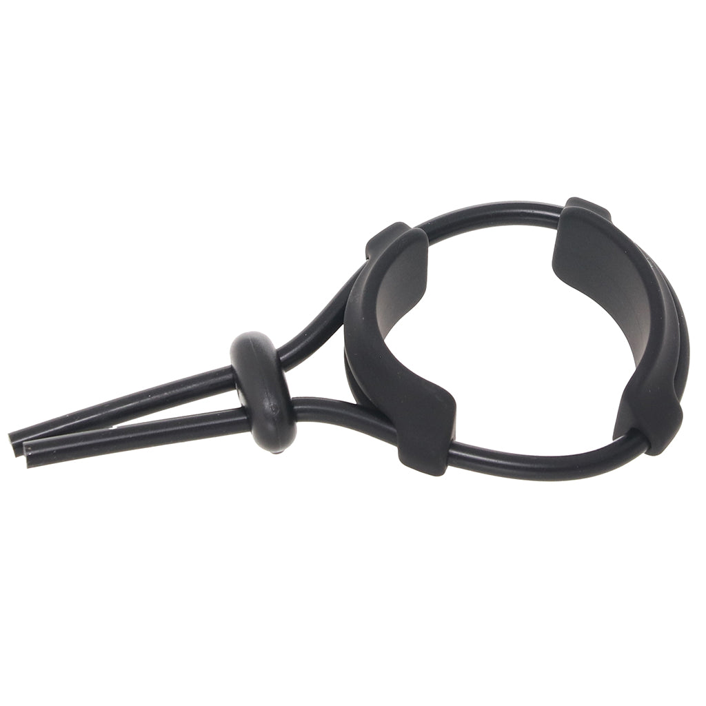 Fit-wise, the flexible silicone loop slides through a locking bead, making it easy to find your perfect snugness between two soft bands. Loosen it up for comfort or cinch it tighter for more intensity; it’s all about what feels good in the moment.