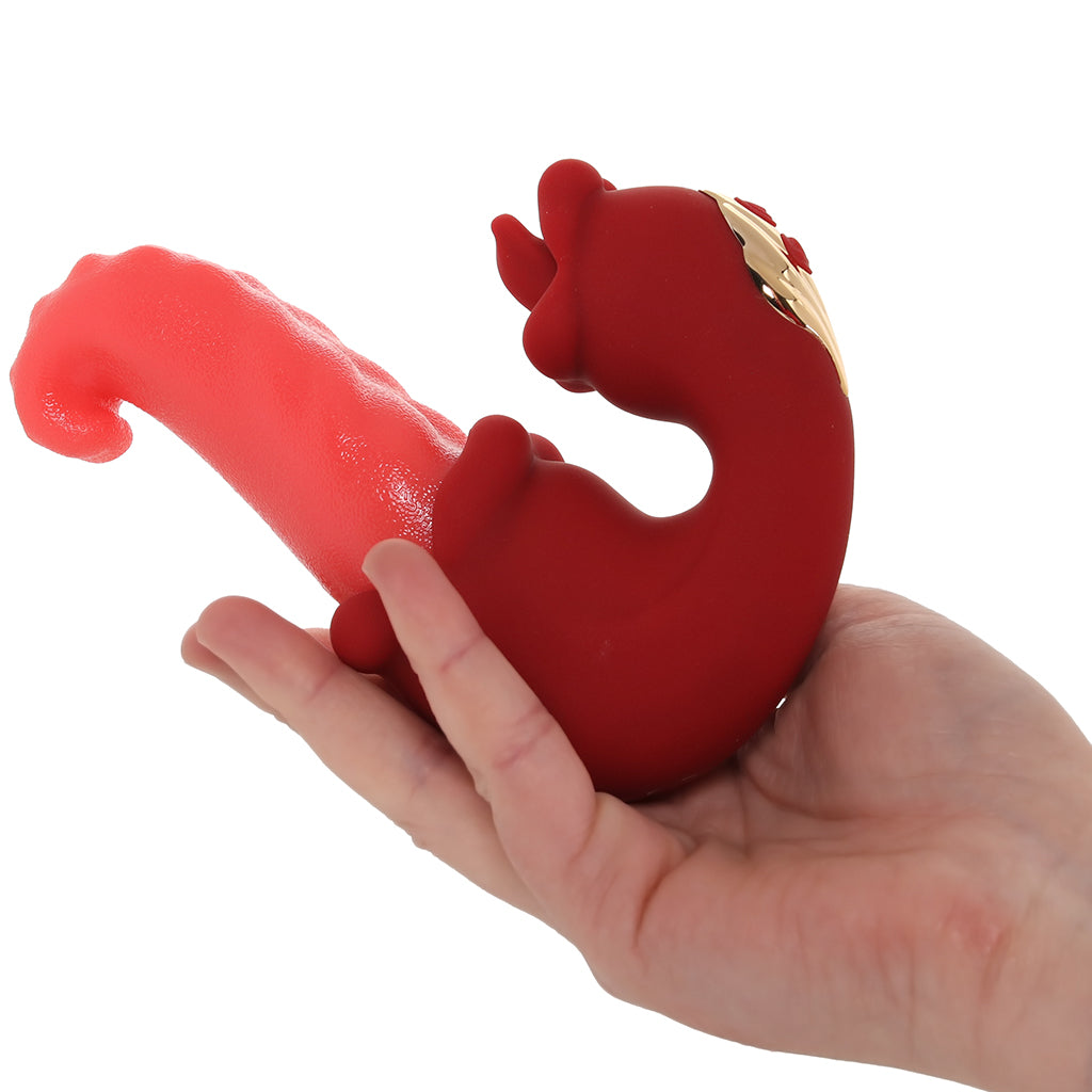 Down below, the smaller tongue keeps things light and teasing with rhythmic pulses you can actually feel building. Up top, the big ripply one rotates and vibrates, shifting pressure inside instead of staying in one place. Every setting changes how it moves, so the sensation keeps evolving .
