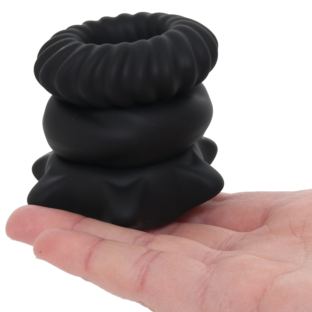 Stretch one, two, or all three of these snug, squishy rings over a partner or toy for maximum pleasure.