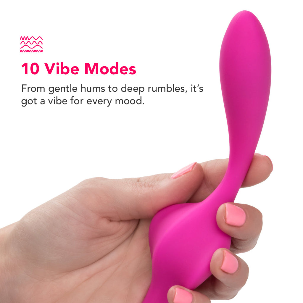 Ten rhythms of steady, pulsating and escalating pleasure activate at the touch of a button- vibration is centered in the longer bulb, though it's definitely noticeable at the wider end, too.