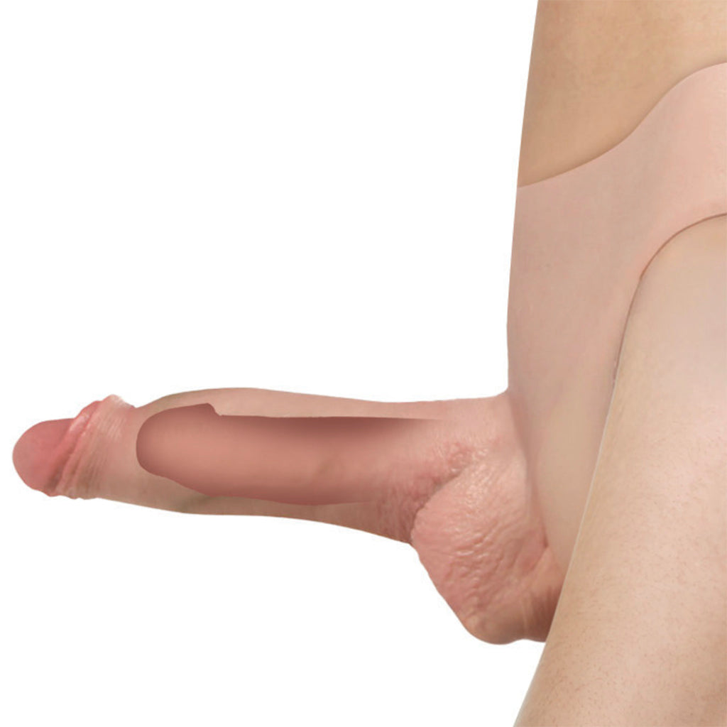Just step in, tuck yourself into the hollow interior and let the firm, realistic extender do the heavy lifting. From the glossy surface to the blushing pink tip, textured balls, and raised veins, this strap-on look is seriously convincing—because your new and improved 6.2" (5" insertable) package doesn’t just feel real, it looks it, too!